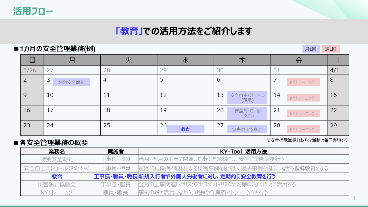 「教育」における使い方 2025年07月21日 05:52 更新 「教育」におけるKY-Toolの使い方_240704.pdf 1 MB ダウンロード 関連記事 パトロール 「KY活動」における使い方 「リスクアセスメント」における使い方 ※更新中