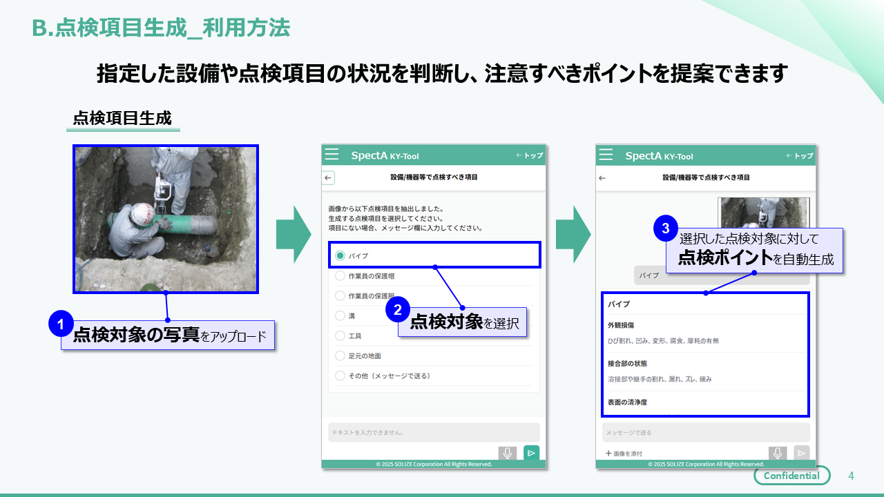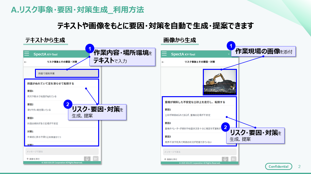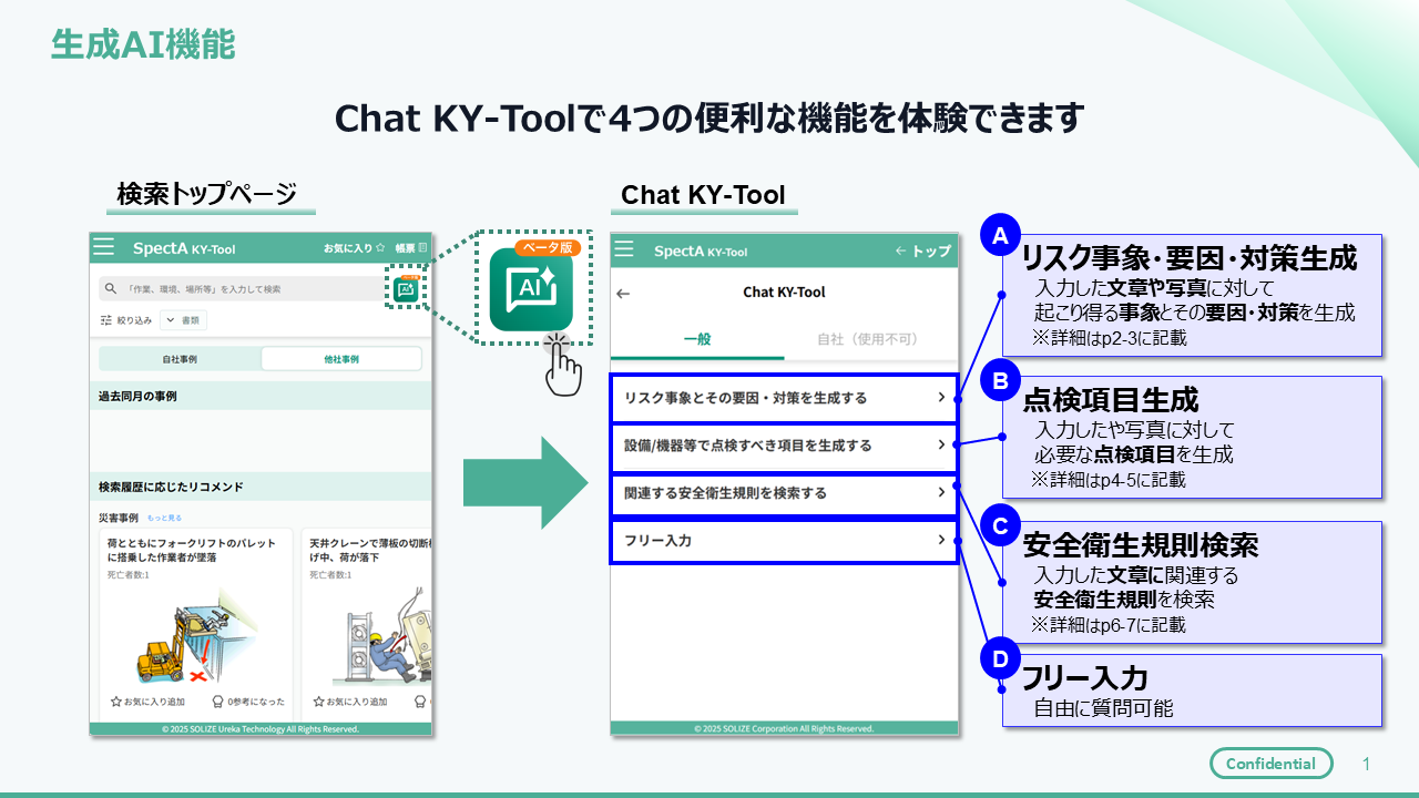Chat KY-Tool 2025年09月05日 04:03 更新 1. 生成AI機能2. A_リスク事象・要因・対策生成3. B_点検項目生成4. C_安全衛生規則検索 14_Chat KY-Tool_250905.pdf 1 MB ダウンロード 関連記事 トップページ_事例・要因対策検索 ログイン方法 リリースノート_Ver3.9.3 各種データ一括設定 各種データ編集