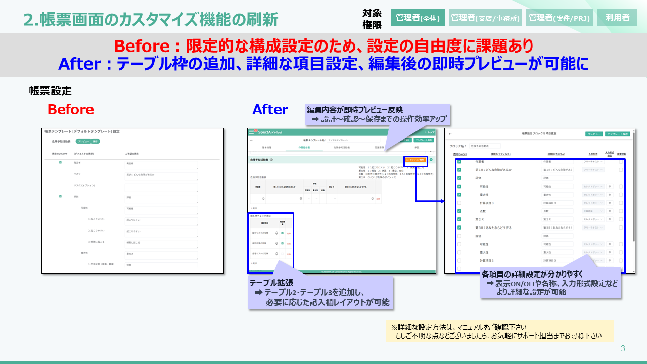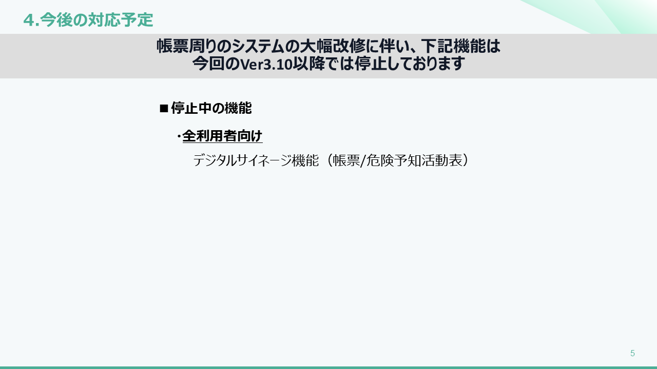 リリースノート_Ver3.10 2025年07月30日 01:29 更新 リリース日:7月31日(木)1. 帳票画面のデザイン刷新2. 帳票画面のカスタマイズ機能の刷新3. 軽微な機能修正・バグ修正等4. 今後の対応予定 Ver3.10リリースノート_05.pdf 900 KB ダウンロード 関連記事 リリースノート_Ver3.9.3 リリースノート_Ver3.10.1 リリースノート_Ver3.12