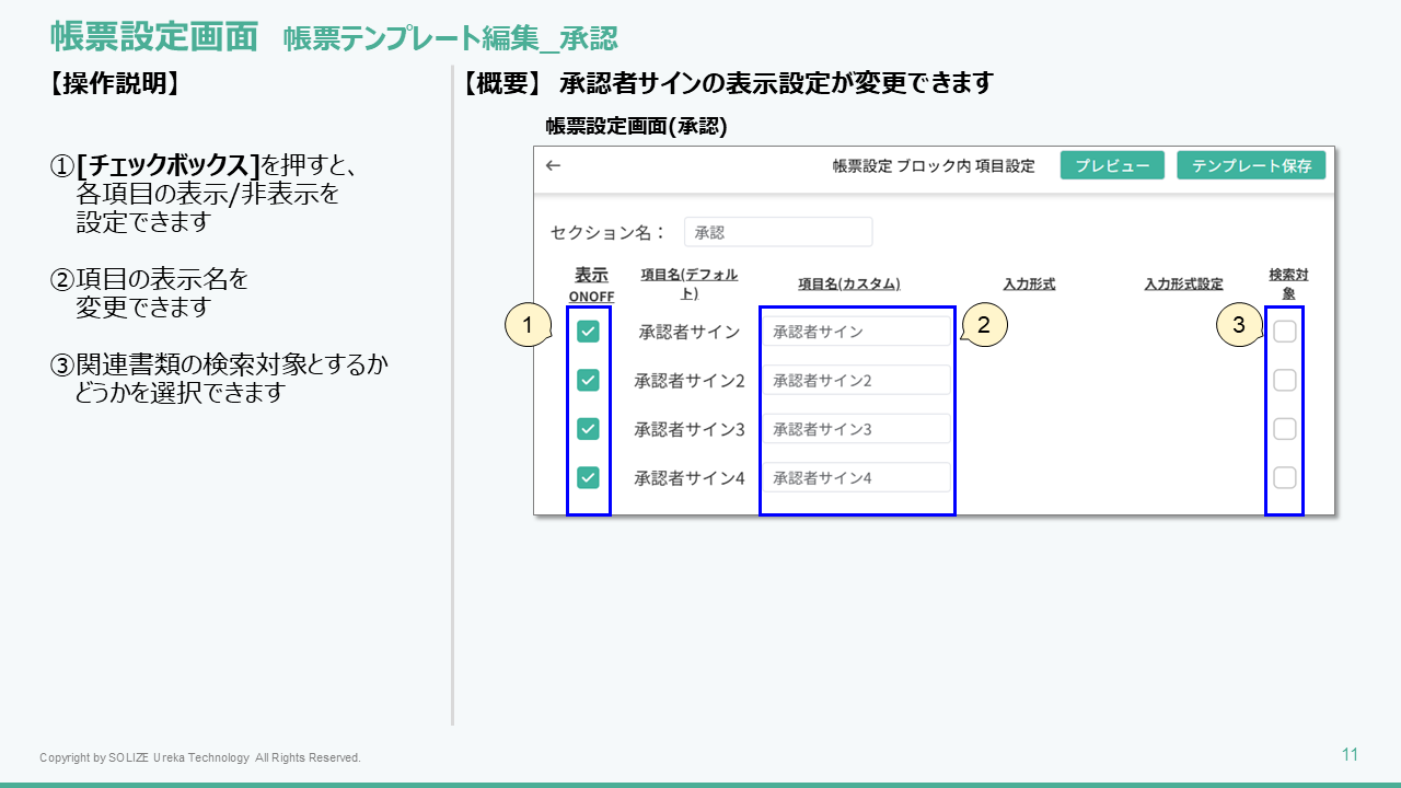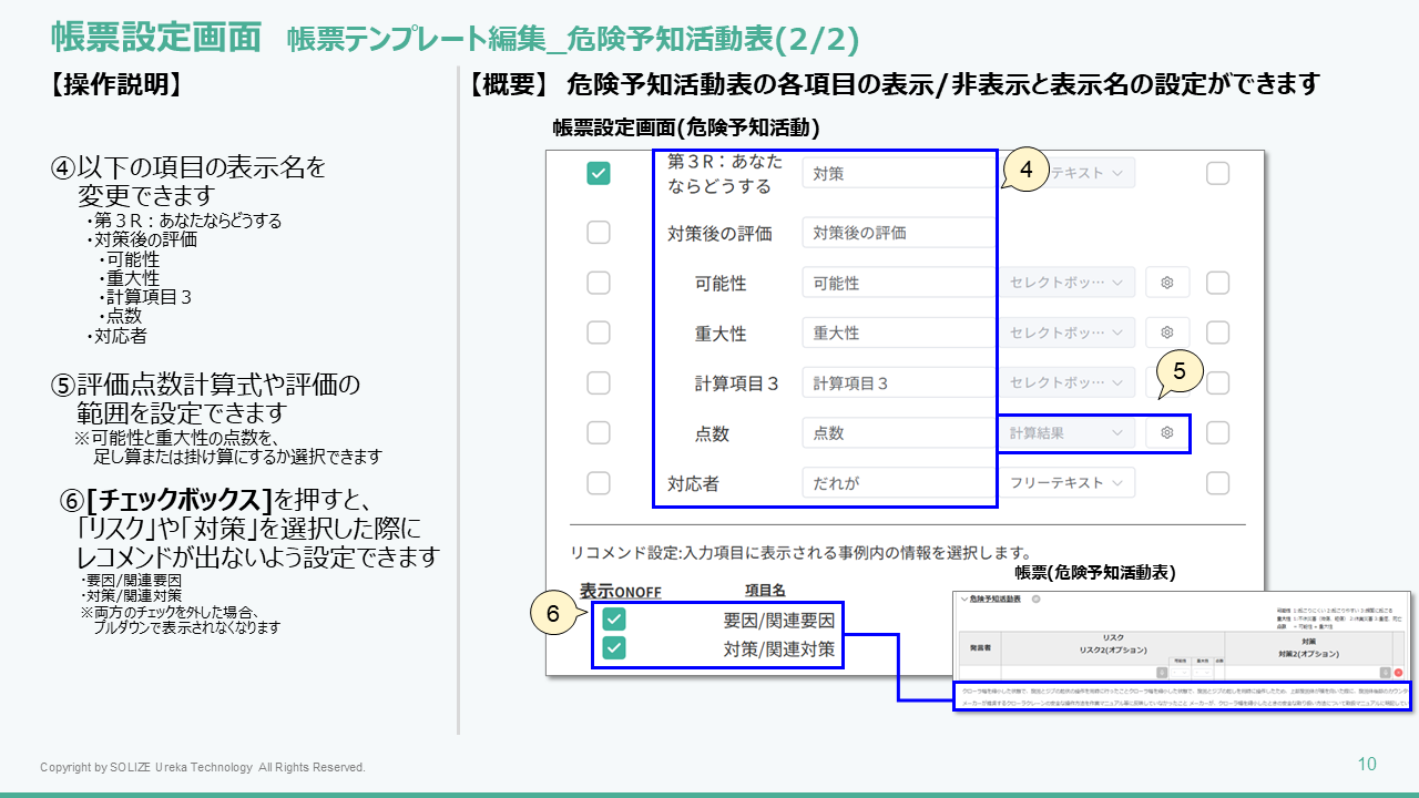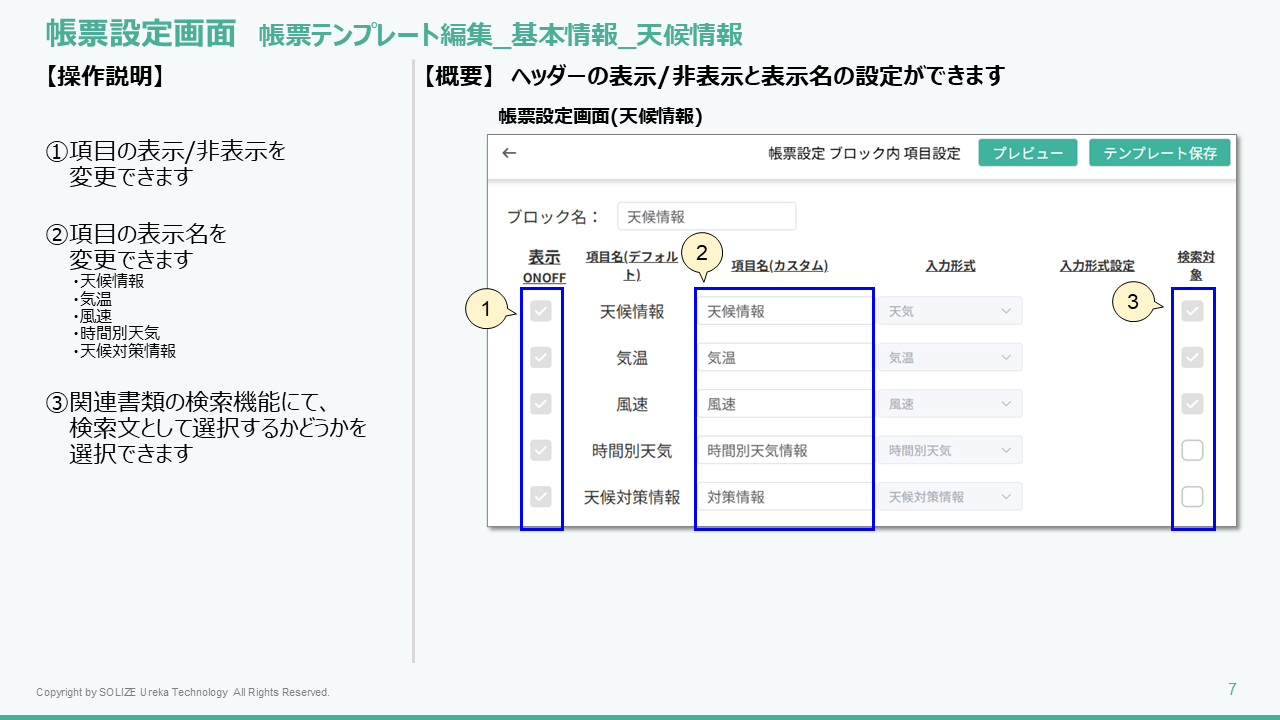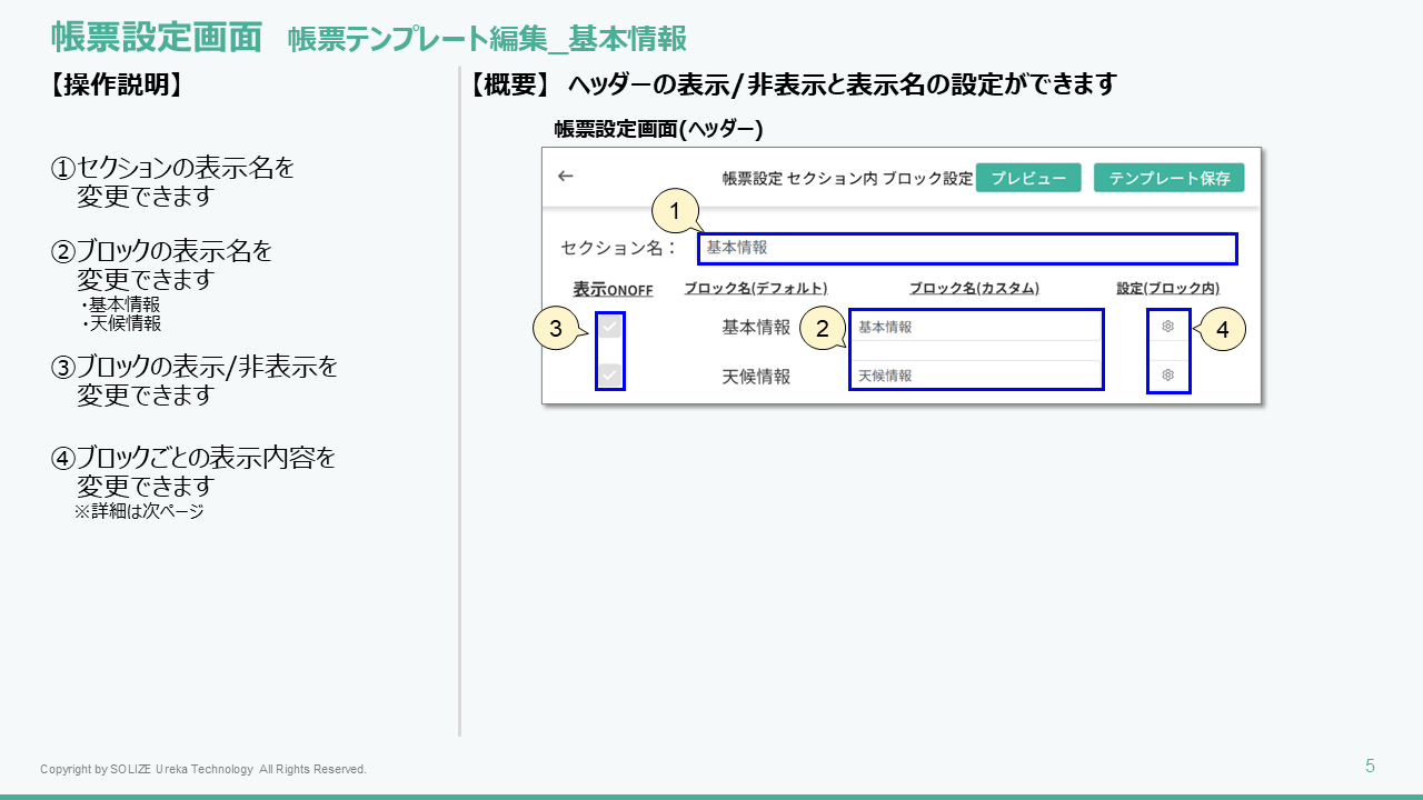 帳票設定 2025年08月04日 06:06 更新 1. 帳票設定画面への遷移2. 帳票テンプレート編集 2-1. 機能説明 2-2. 基本情報 2-3. 作業指示書 2-4. 危険予知活動表 2-5. 承認 帳票設定_250730.pdf 1 MB ダウンロード 関連記事 書類設定 帳票 各種データ編集 ツール概要説明 ヒヤリハット報告