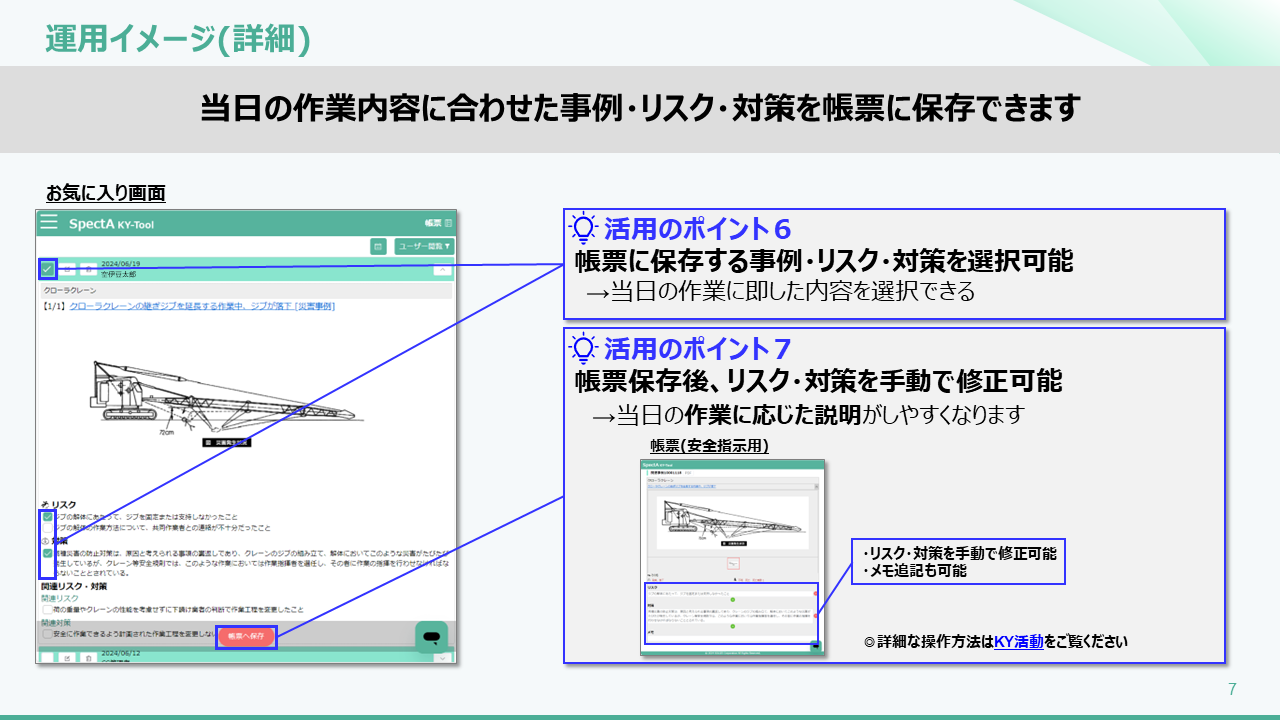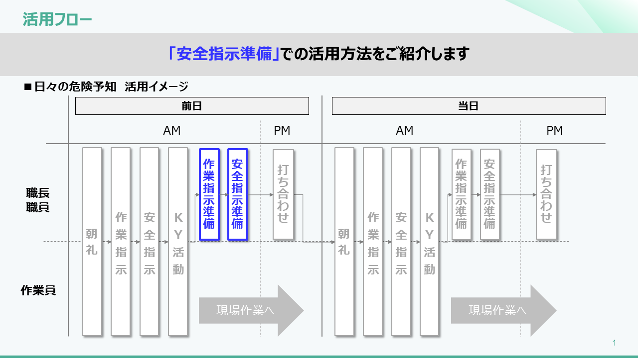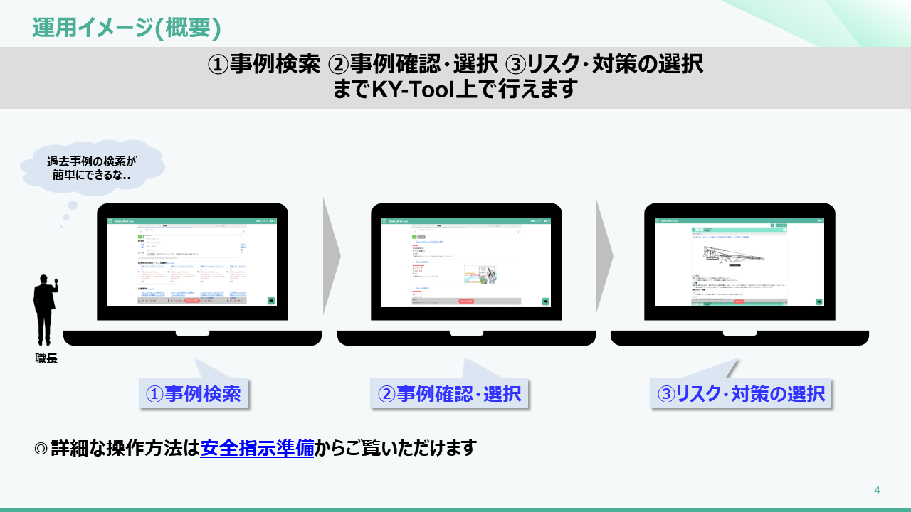「安全指示準備」における使い方 2025年07月21日 05:51 更新 「安全指示準備」におけるKY-Toolの使い方_240621.pdf 1 MB ダウンロード 関連記事 「KY活動」における使い方 各種データ編集 「全体朝礼」におけるKY-Toolの使い方