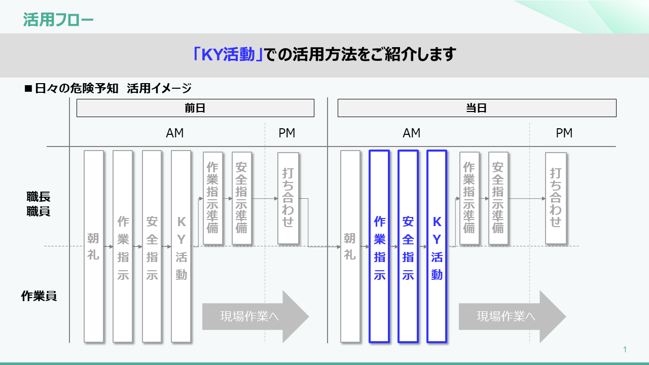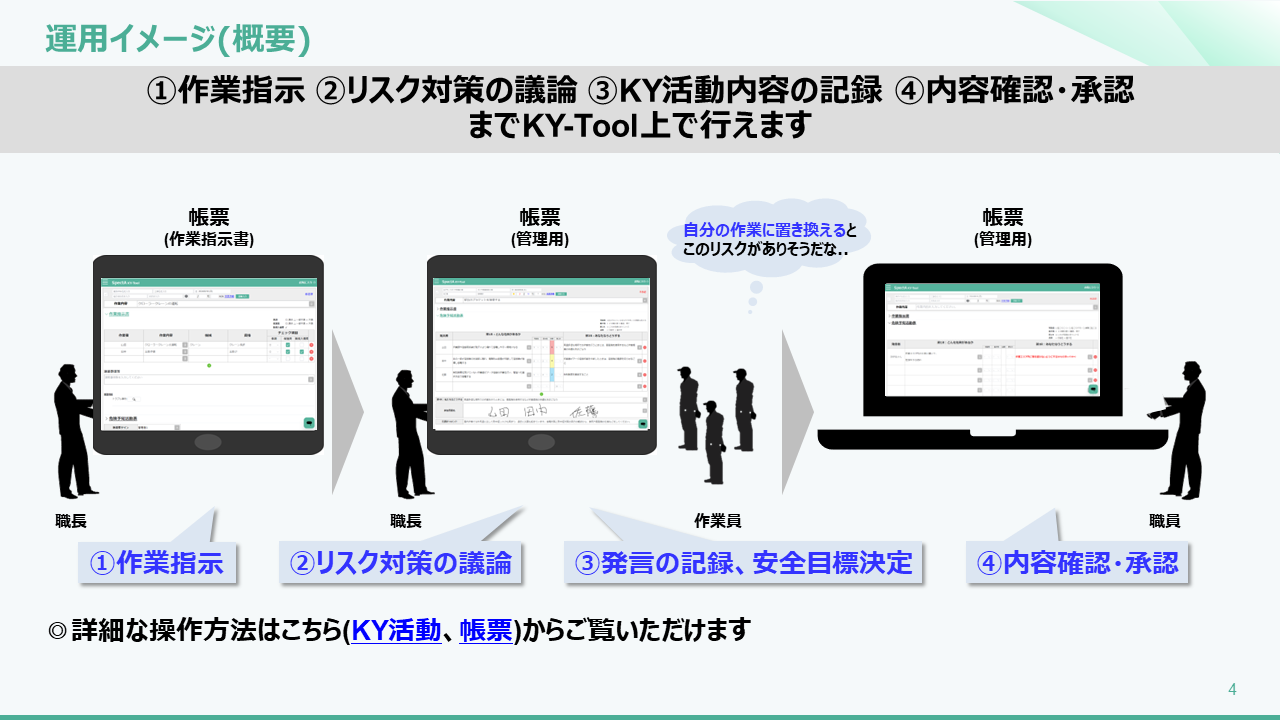 「KY活動」における使い方 2025年07月21日 05:50 更新 「KY活動」におけるKY-Toolの使い方_240614.pdf 1 MB ダウンロード 関連記事 「注意喚起」における使い方 「全体朝礼」におけるKY-Toolの使い方 リリースノート_Ver3.11 ログイン方法 「安全指示準備」における使い方